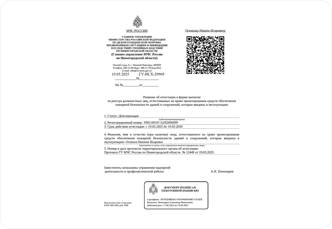 Эти документы подтверждают, что мы имеем официальное право на проведение экспертиз, разработку документации и оценку пожарных рисков. Мы работаем строго в рамках законодательства РФ, что гарантирует надёжность и законность наших решений.